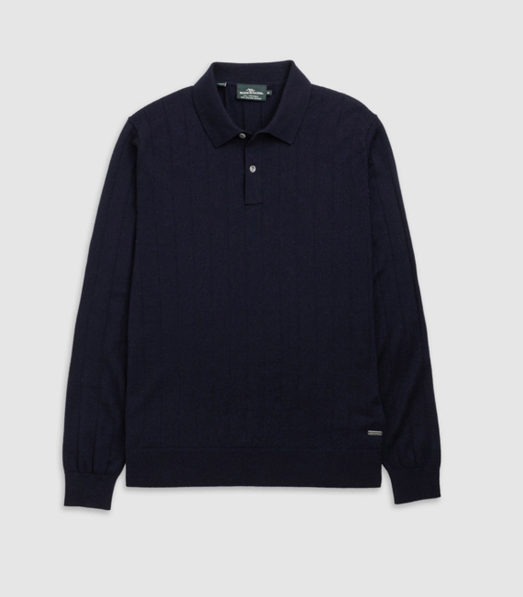 RODD AND GUNN - MURDOCH Long Sleeve Knitted Polo In INK EP1145