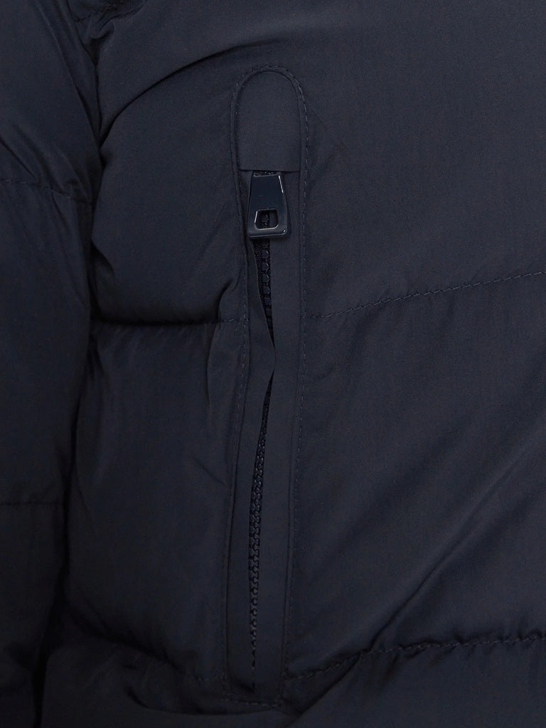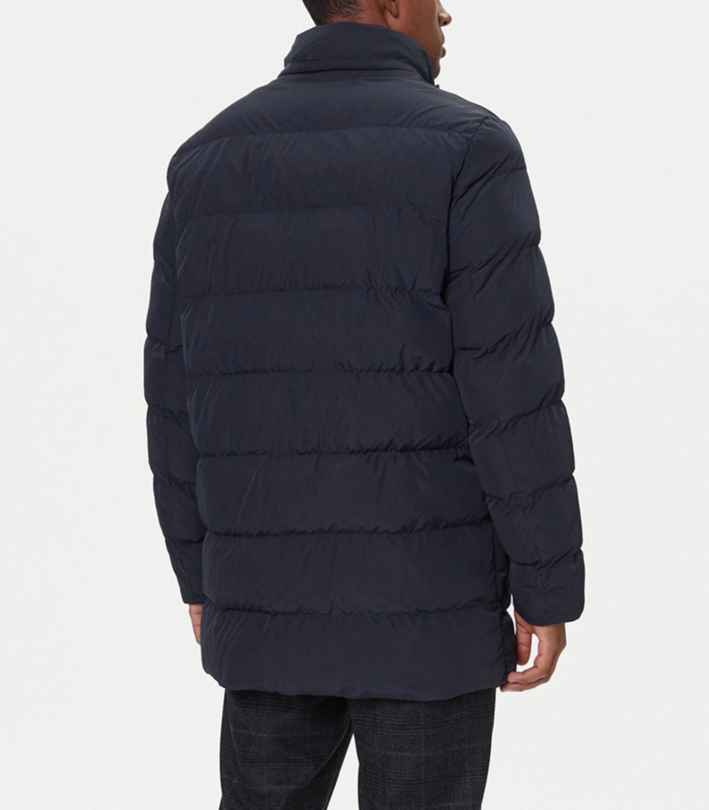 This GEOX Parka jacket for men with a contemporary silhouette and a design that will help you take on harsh winter weather with ease and style. It has been crafted from the softest recycled polyester in a classic navy blue palette and filled with an EcologicWARM padding that protects against the elements. The GEOX PIEVE merges everyday comfort and Respira™️ breathability, making it the ideal piece of outerwear for urban looks during bouts of cold weather.